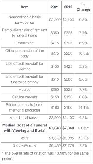 Much like a wedding, the cost of a funeral can vary widely depending on how simple or elaborate it is. As of the latest data in 2023 provided by the NFDA, the median cost of a funeral is $8,300. This is a 5.8% increase since 2021, when the median cost was $7,848. Similarly, the median cost of a funeral with cremation has increased by 8.1% to $6,280 in 2023.